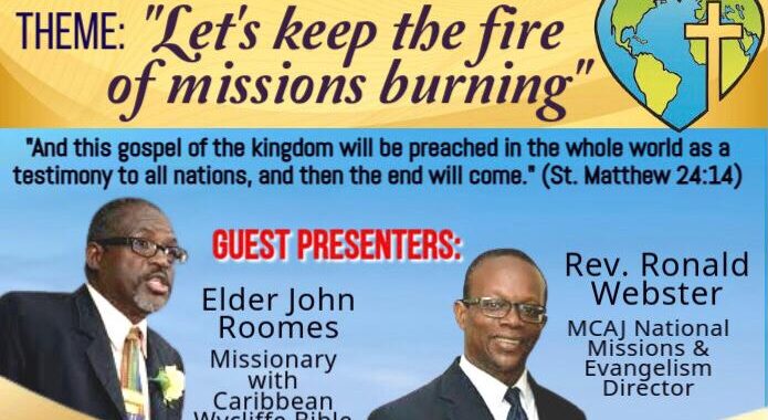 The MCAJ Central Region’s Missions Conference is under the theme “Let’s keep the fire of missions burning“. Join them at Emmanuel Missionary Church on September 7. Guest Speakers: Elder John Roomes and Reverend Ronald Webster.