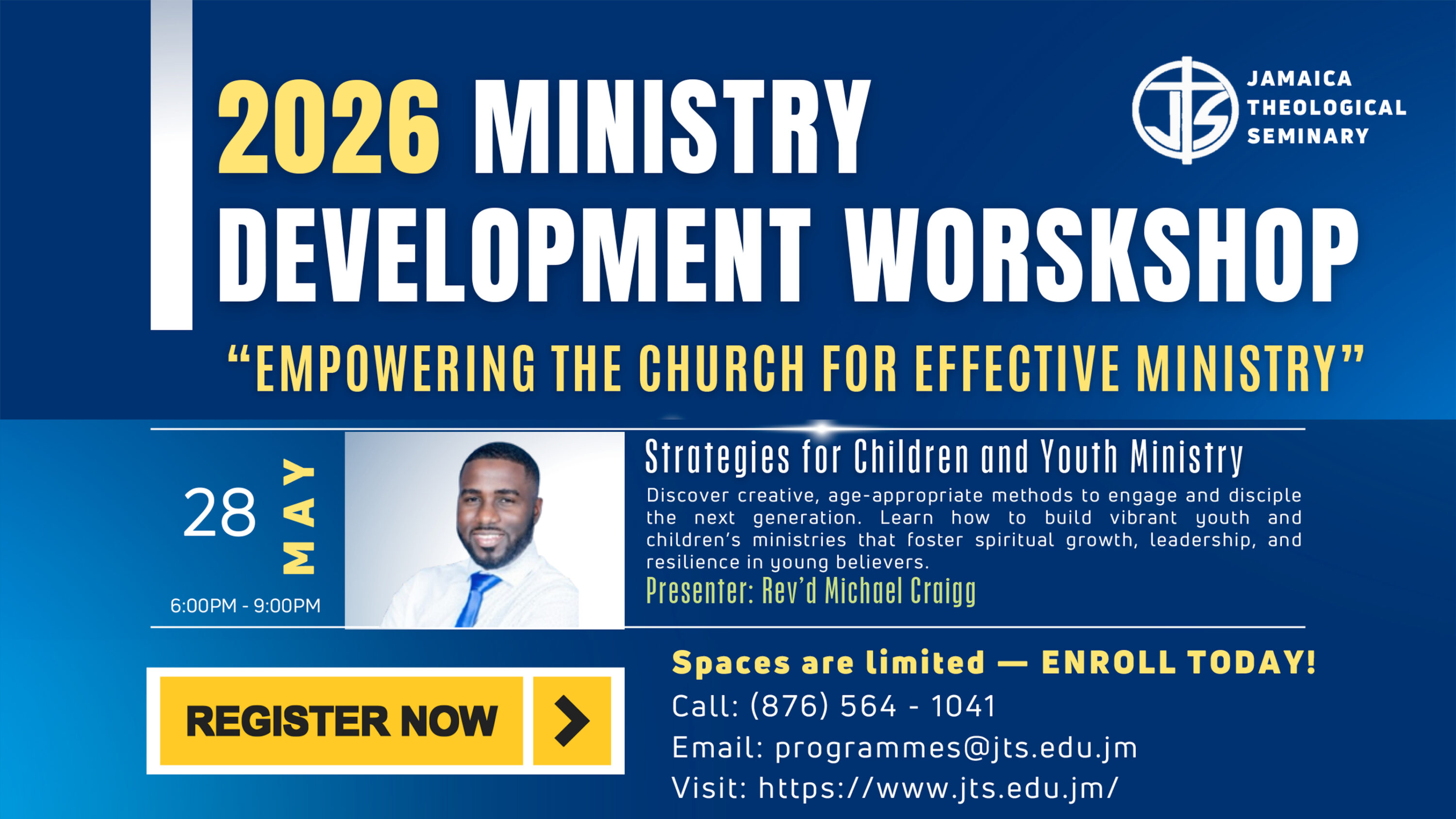 The Jamaica Theological Seminary presents a series of workshops aimed at Ministry Development. Select your area of interest from the flyer and enrol now! Contact them for more details.