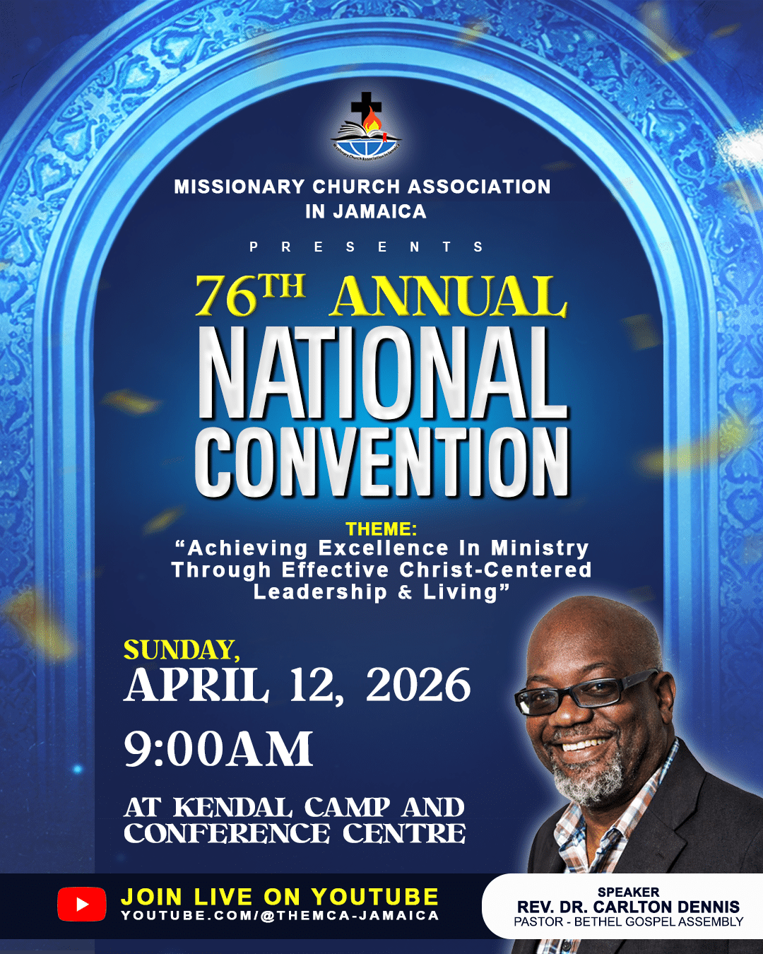 All roads lead to the Kendal Camp and Conference Centre for the 76th Annual National Convention Service of the Missionary Church Association in Jamaica on Sunday, April 12, 2026, commencing at 9 AM. The Guest Speaker is Reverend Dr Carlton Dennis, Pastor of Bethel Gospel Assembly. All are invited!!